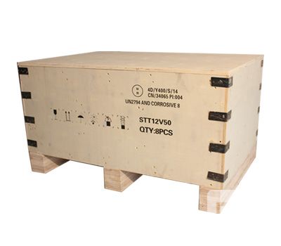 木包裝箱主材采用膠合板,如有需要,可采用木條、金屬等進(jìn)行加固,木包裝箱底部可設(shè)置托盤支腳,方便叉車搬運(yùn)。